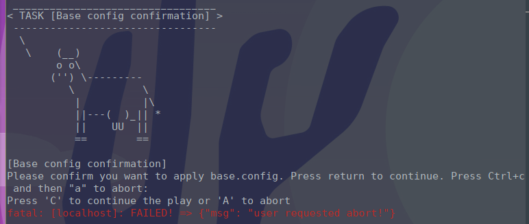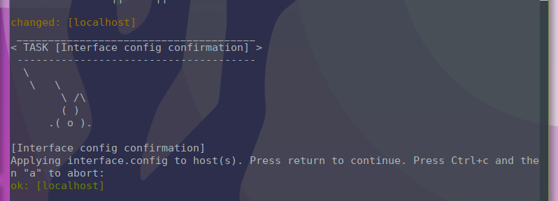 prompt: 'Applying interfaces.config to host(s). Press return to continue. Press Ctrl+c and then "A" to abort'
