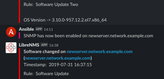 Now that you have hopefully installed your phenomenal new monitoring system, you can make use of the well-documented API that it provides. Here we will use Ansible's uri module to dynamically POST the newly provisioned server's hostname to LibreNMS to begin polling on our configured SNMP v2c community: